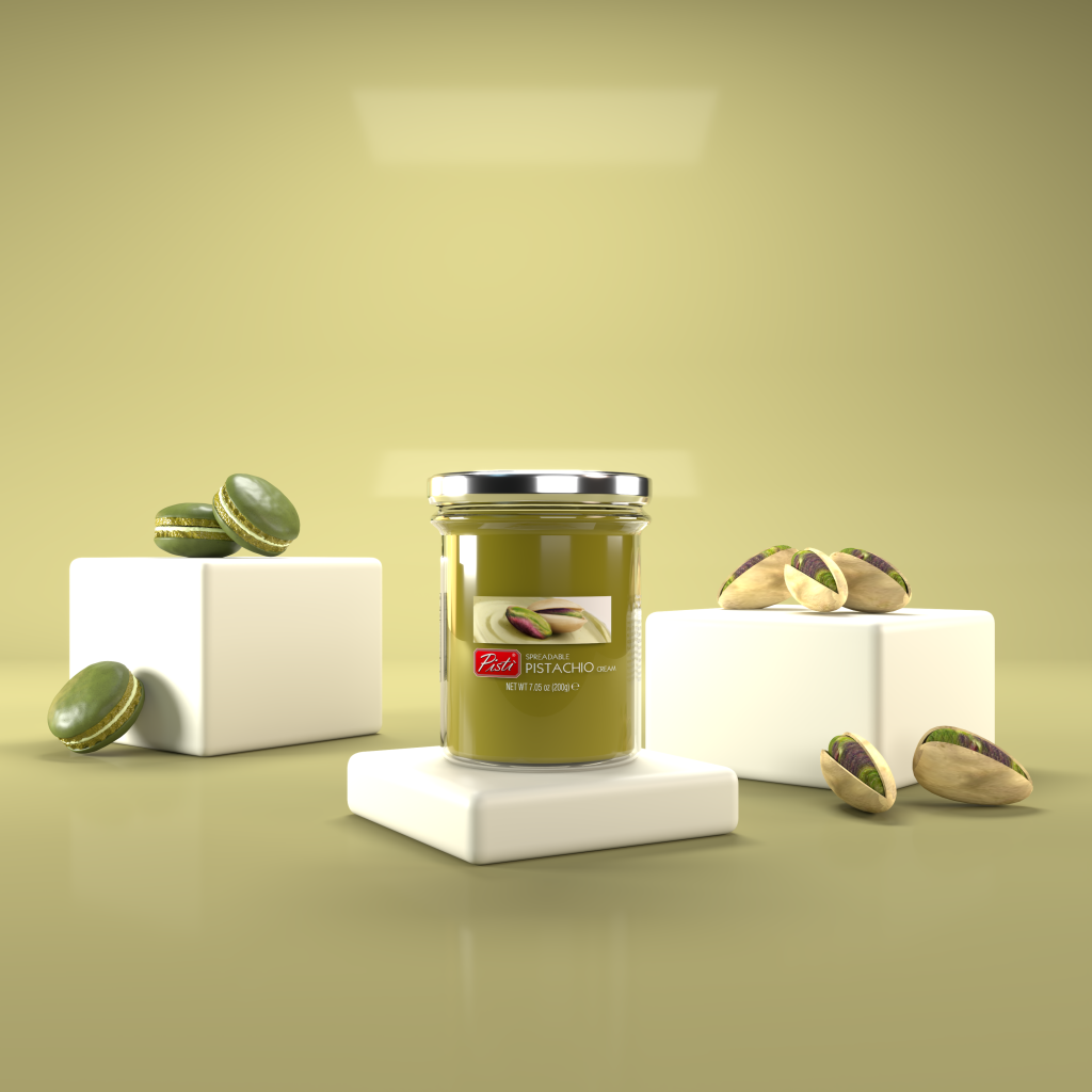 This pistachio paste product visualization was created to showcase SYAN’s ability to deliver high-end, photorealistic 3D renders tailored for commercial and branding purposes in the food and packaging industry.